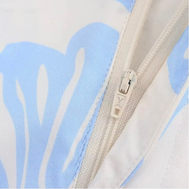 The lightweight fabric drapes beautifully, while the soft blue floral print adds a fresh, coastal sophistication. Whether styled for brunch, travel, or elevated everyday wear, this set delivers effortless luxury.